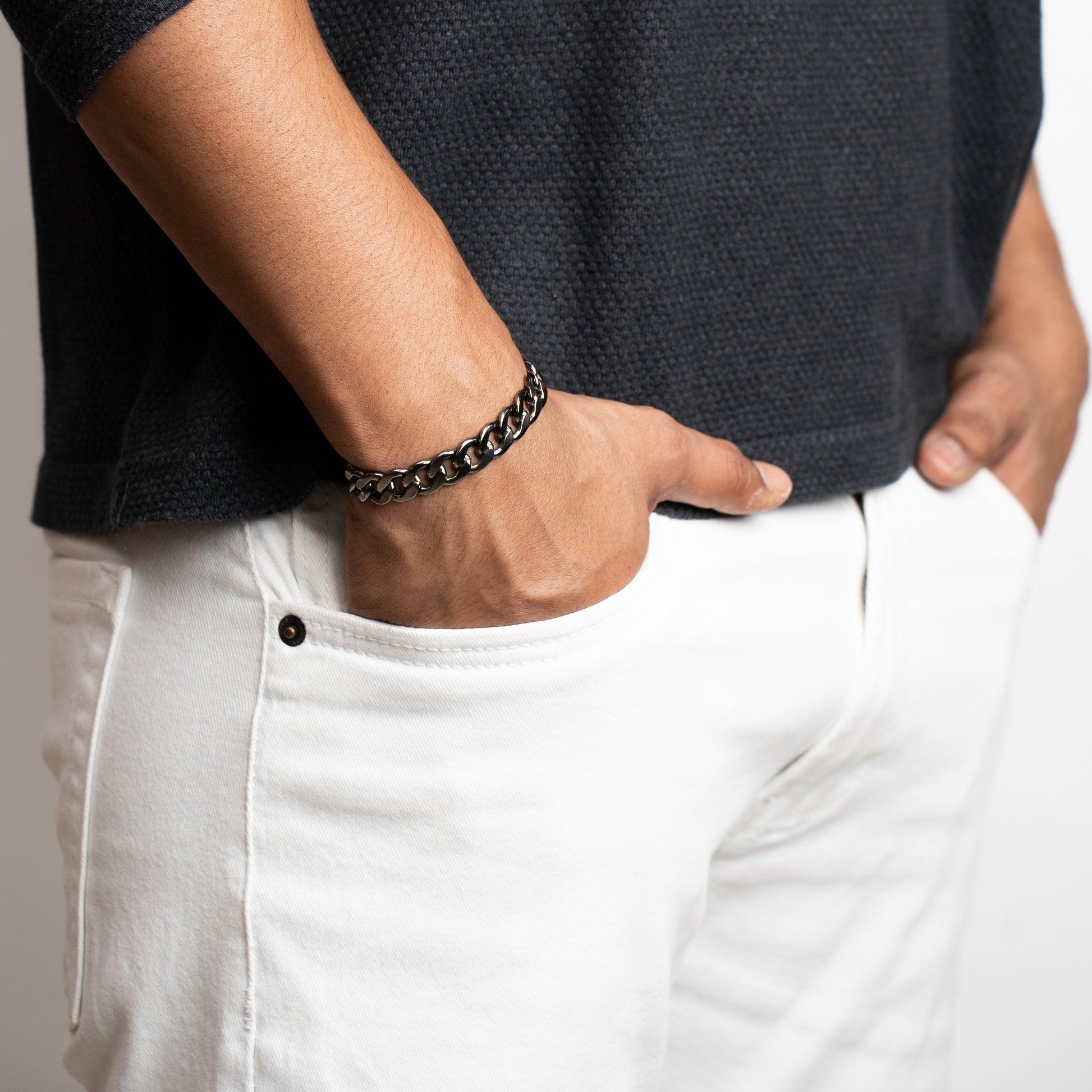 CUBAN CHAIN BRACELET - 10mm - CHROME NOIR